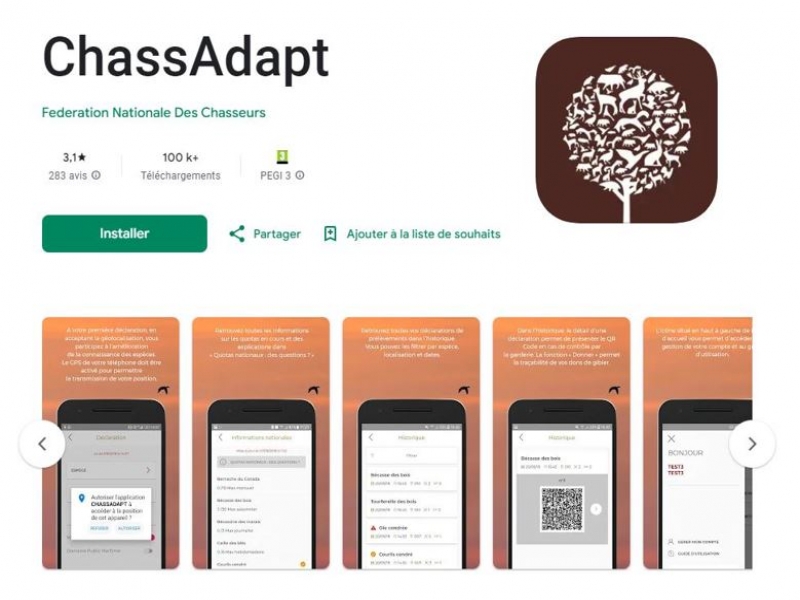ChassAdapt, qu'est ce que c'est ? C'est un Carnet de chasse numérique ! Une application développée par la FNC pour la mise en œuvre de la gestion adaptative afin que les chasseurs puissent enregistrer leurs prélèvements en temps réel sur leur smartphone, suivre les quotas nationaux et avoir connaissance de leur historique de prélèvement, cette application gratuite, simple et pratique d’utilisation permet d'entrer ses prélèvements en quelques clics directement sur le terrain, même sans réseau Internet.