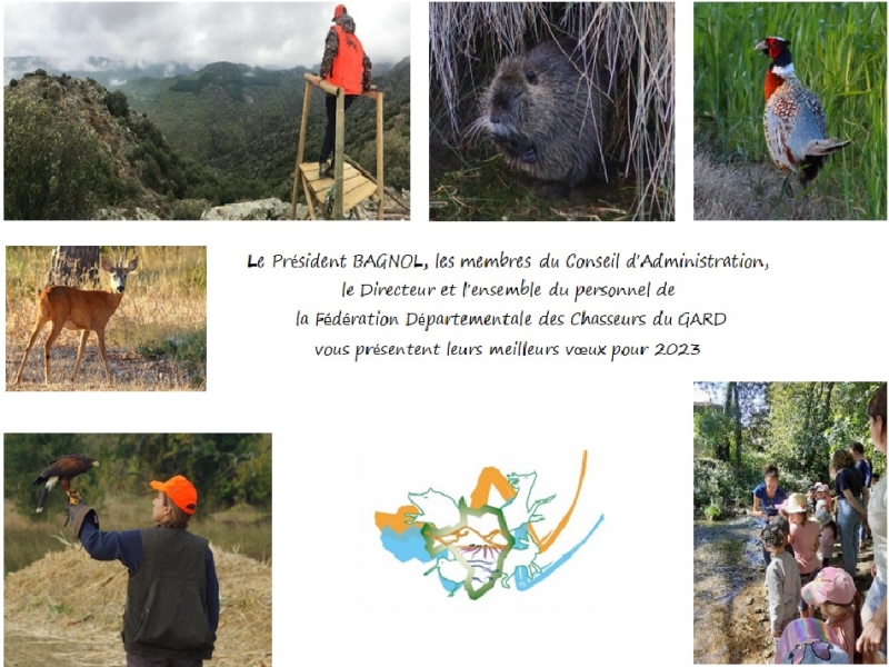 Le Président BAGNOL, les membres du Conseil d’Administration, le Directeur et l’ensemble du personnel de la Fédération Départementale des Chasseurs du GARD vous présentent leurs meilleurs vœux pou...