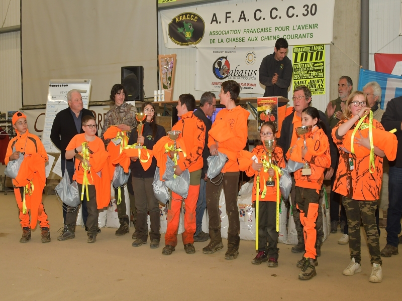 Lors d'un concours de chiens courants rapprocheurs qui a eu lieu ce dimanche 16 Février 2020, une photo de la remise des récompenses. Cette épreuve était placée sous l'égide de l'AFACCC 30 et organis...