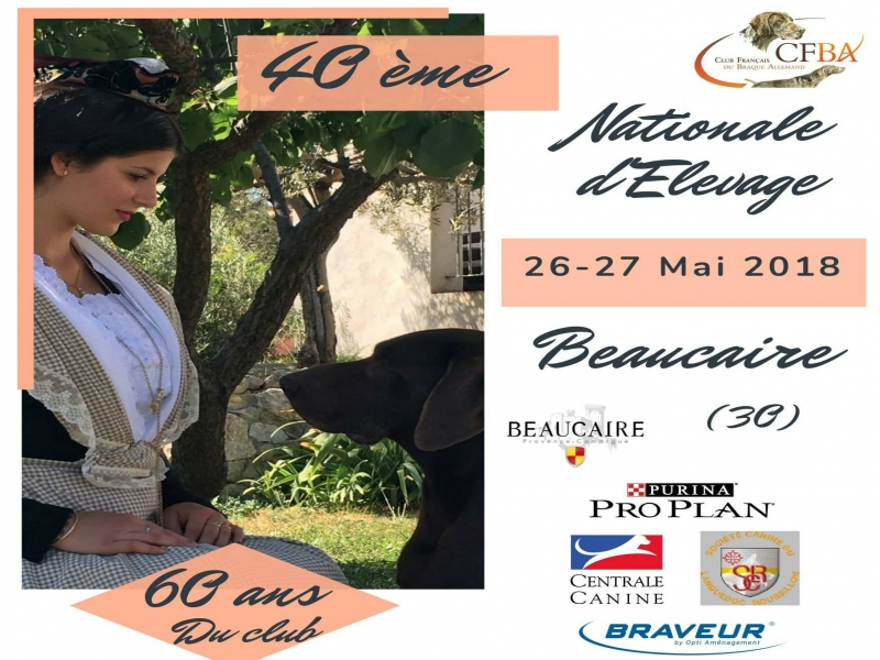 Le Club Français du Braque Allemand organise les 26 et 27 Mai 2018 son exposition Nationale d’Elevage 2018 dans le Département du GARD, à BEAUCAIRE sur le site du Champ de Foire. Cette manifestation est le rassemblement de...