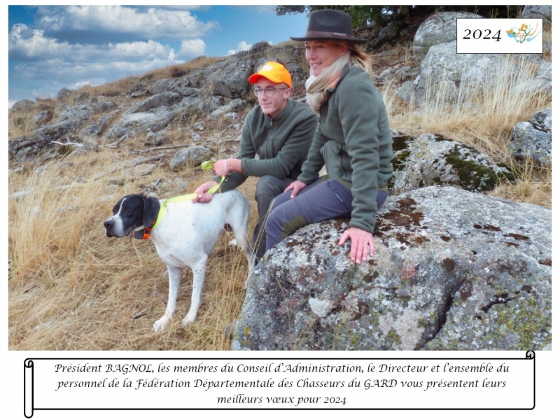 Le Président Gilbert Bagnol, les membres du Conseil d'Administration, le Directeur Marc Valat et l'ensemble du personnel de la Fédération Départementale des Chasseurs du Gard vous présentent leurs meilleurs voeux po...