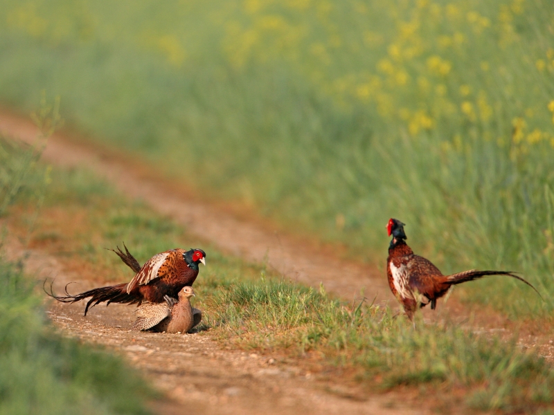 Le reste de la journée, les faisans sont au repos dans un couvert (haies, hautes herbes…) qu’ils quittent deux à trois heures avant le coucher du soleil, pour aller s’alimenter et regagnent leur dortoir dès l’arrivée de la nuit.