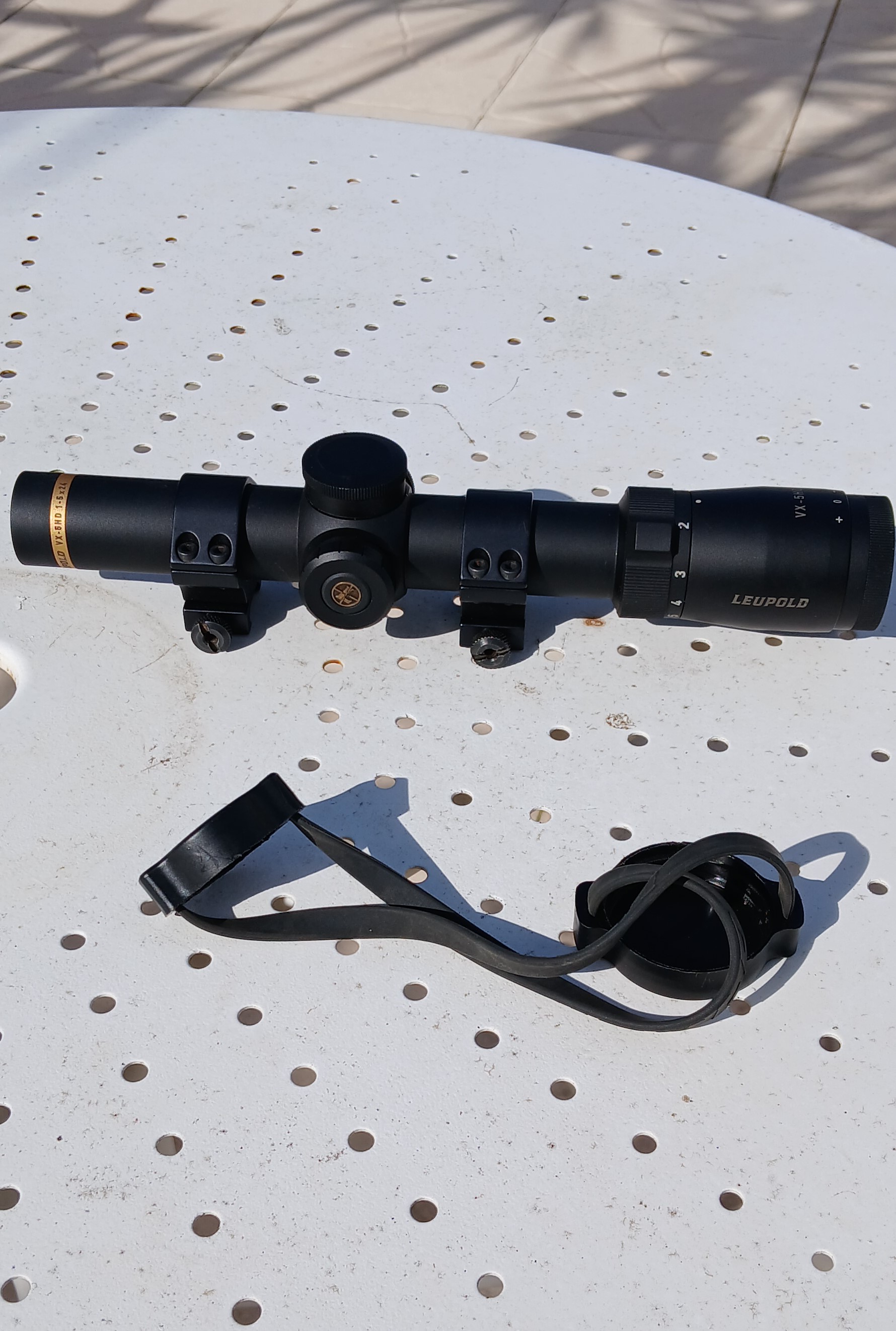 Vends ou échange cause double emploi, Lunette de battue LEUPOLD VX-5HD Grossissement 1-5 X 24 avec réticule 2 MOA lumineux à 6 positions et arrêt automatique. Diamètre du tube 30 mm. Vendue avec 2 colliers de fixation sur rail. Batterie CR 2032 fournie. Parfait état.Prix neuve 1000¤ . Vendue 550¤ Pas d'expédition, à retirer sur place.